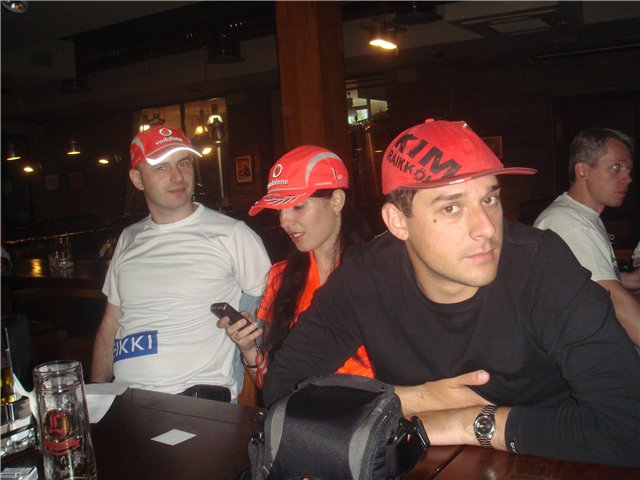 После почти месяного отсутствия на клубных сборах, на ГП Испании я вернулся в строй с новыми силами. На квалификации 9 мая, не смотря на праздник прибыло большое количество людей - 12 человек. Квалификация снова как всегда кого порадовала, кого огорчила. Понравился Макс во время просмотра квалы опять говорящий о том, как пилотирует Ковалайнен, и время от времени оглядываясь назад, не идет ли Массег, чтобы пофобить Массу. Чуть позже к нам присоедился Степ с братом, который сказал, что следующую квалификацию как вариант мы можем посмотреть в "Бочке". После окончания квалификации кто разбежался, а кто продолжил далее тусить. |