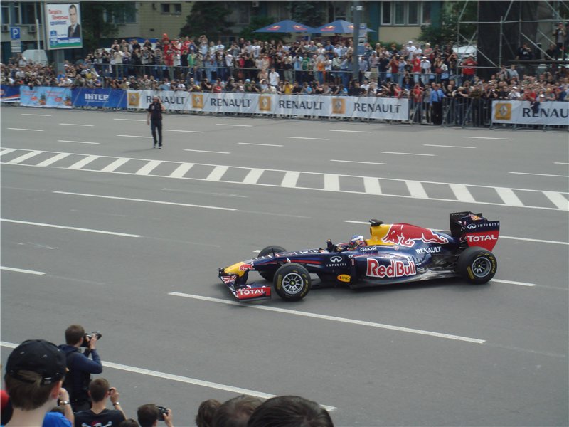 О параде чемпионов Ред Булл, который прошел в Киеве 19 мая, я узнал еще в конце апреля из рекламных щитов, которые были во множественном числе расставлены в магазинах. Никаких правда подробностей по поводу всего этого не было, поэтому придя вечером домой, я нашел информацию о том, что команду Ред Булл намерена приехать в Киев и привезти туда свой формульный болид дабы провести шоу. Позже стало известно, что привезут туда они свой настоящий прошлогодний чемпионский болид, пилотировать его будет Даниэль Риккардо, пилот «Торо Россо», ну и в довесок ко всему этому будет показана машина Наскар, а также чемпион Украины по дрифту Александр Гринчук на Nissan 350Z. |